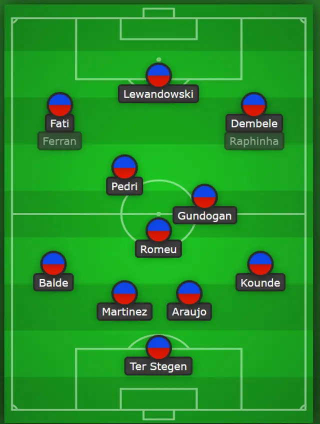 (Attack) Ansu, Lewandowski, Dembele.